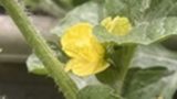 左上に太郎が見えます。蔓から太郎に伸びるへその緒の付け根の髭が茶色に枯れていて収獲時期を示していました。